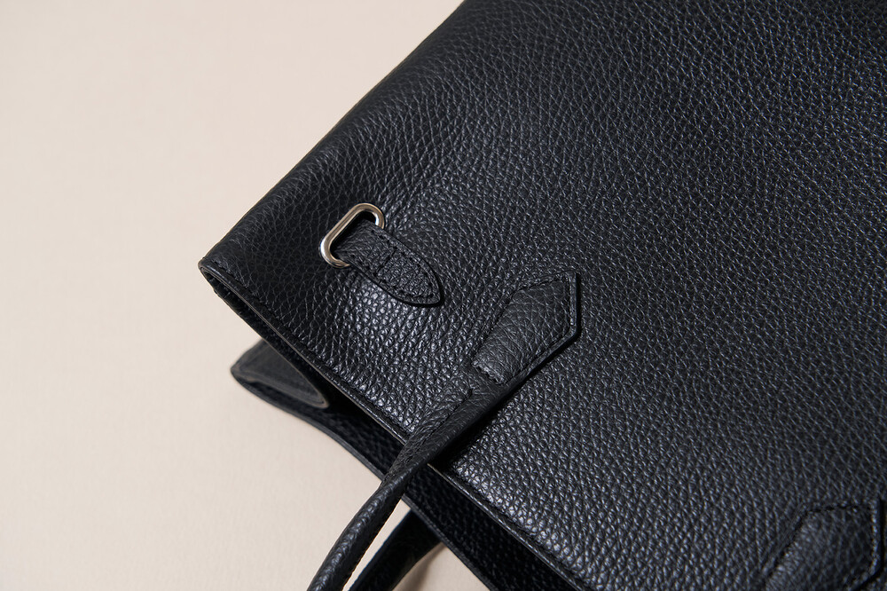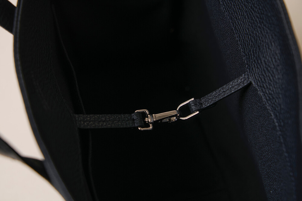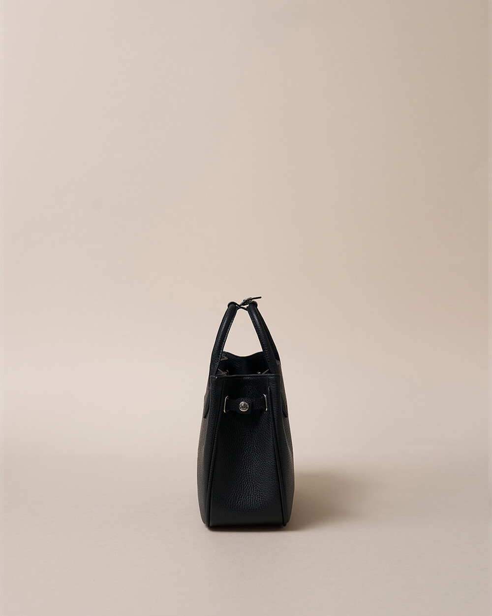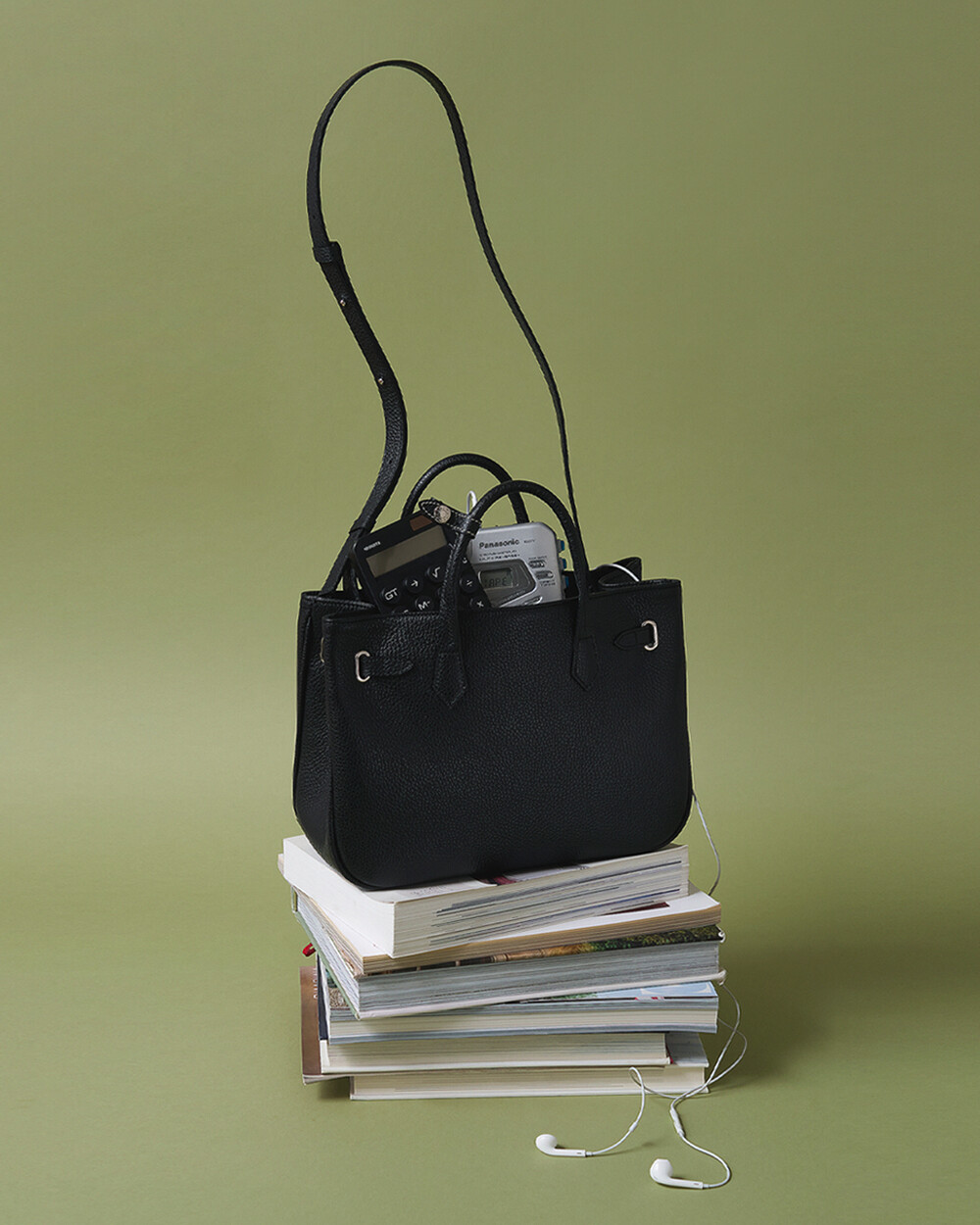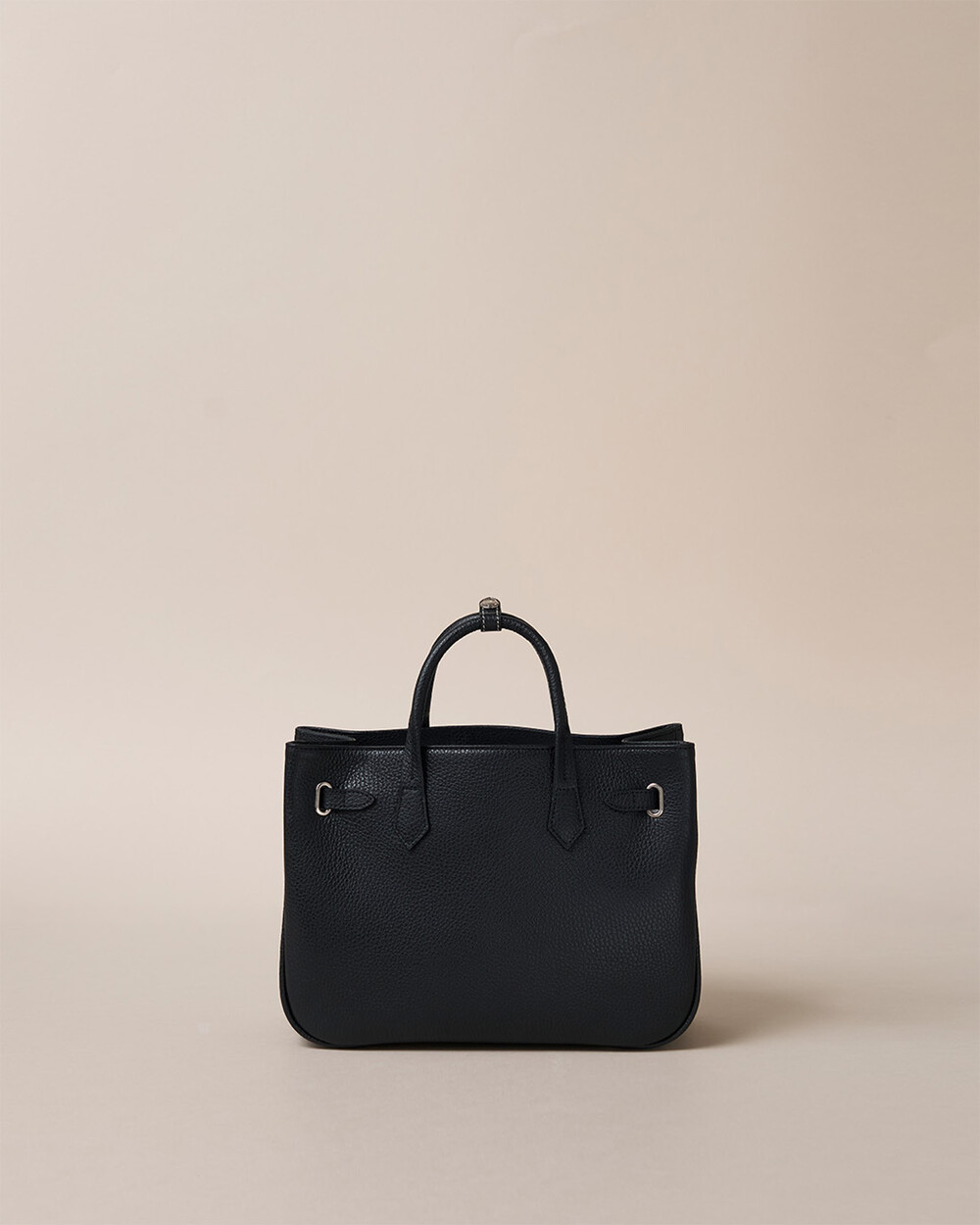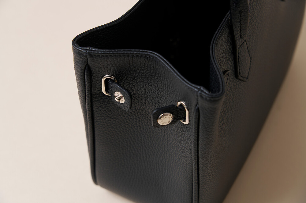 몸체는 부드러운 이탈리아 소가죽과 말랑한 보강재로 탄성과 유연함이 느껴지며, 바닥은 형태를 유지할 수 있도록 탄탄하게 보강되어 있습니다. 핸들은 아래로 쳐지거나 꺾이지 않도록 설계되어 손으로 들거나 손목에 가볍게 걸칠 수 있습니다.
