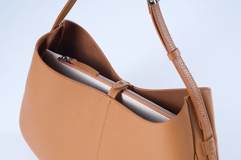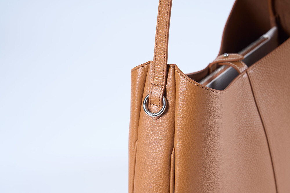 시그니처 가죽으로 스크래치에 강하고, 견고함이 느껴지는 호보백으로 버클을 5단계로 조절해 숄더, 크로스로 활용하거나, 한개의 홀이 따로 있어 토트백으로 연출할 수 있습니다.