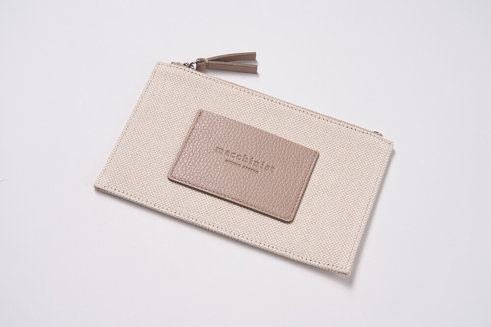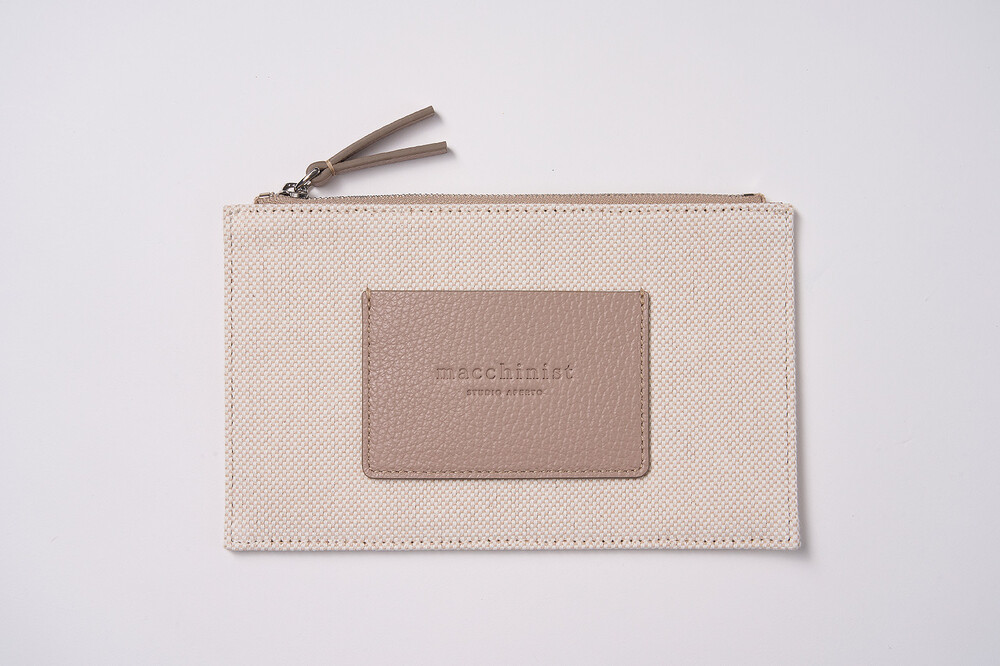 핸드폰 혹은, 열쇠나 화장품을 넣기 좋은 사이즈의 파우치로 내부에는 안감이 대어져 있으며, 앞면에는 카드 홀더가 마련돼 있습니다.