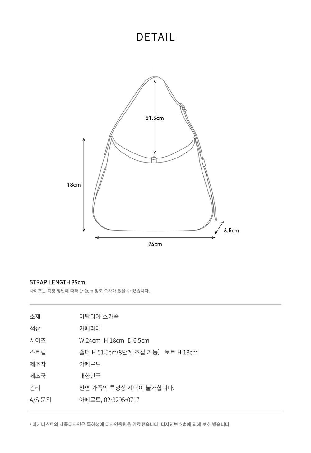 버클을 6단계로 조절해 숄더, 짧은 크로스로 활용하거나, 반대편에 2개의 홀이 따로 있어 토트백으로 연출할 수 있습니다.