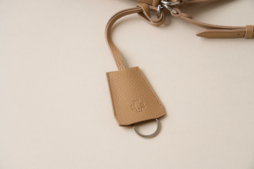 토트, 숄더, 크로스 3way로 연출할 수 있으며, 탈부착 가능한 키링이 세트로 구성되어 있습니다.