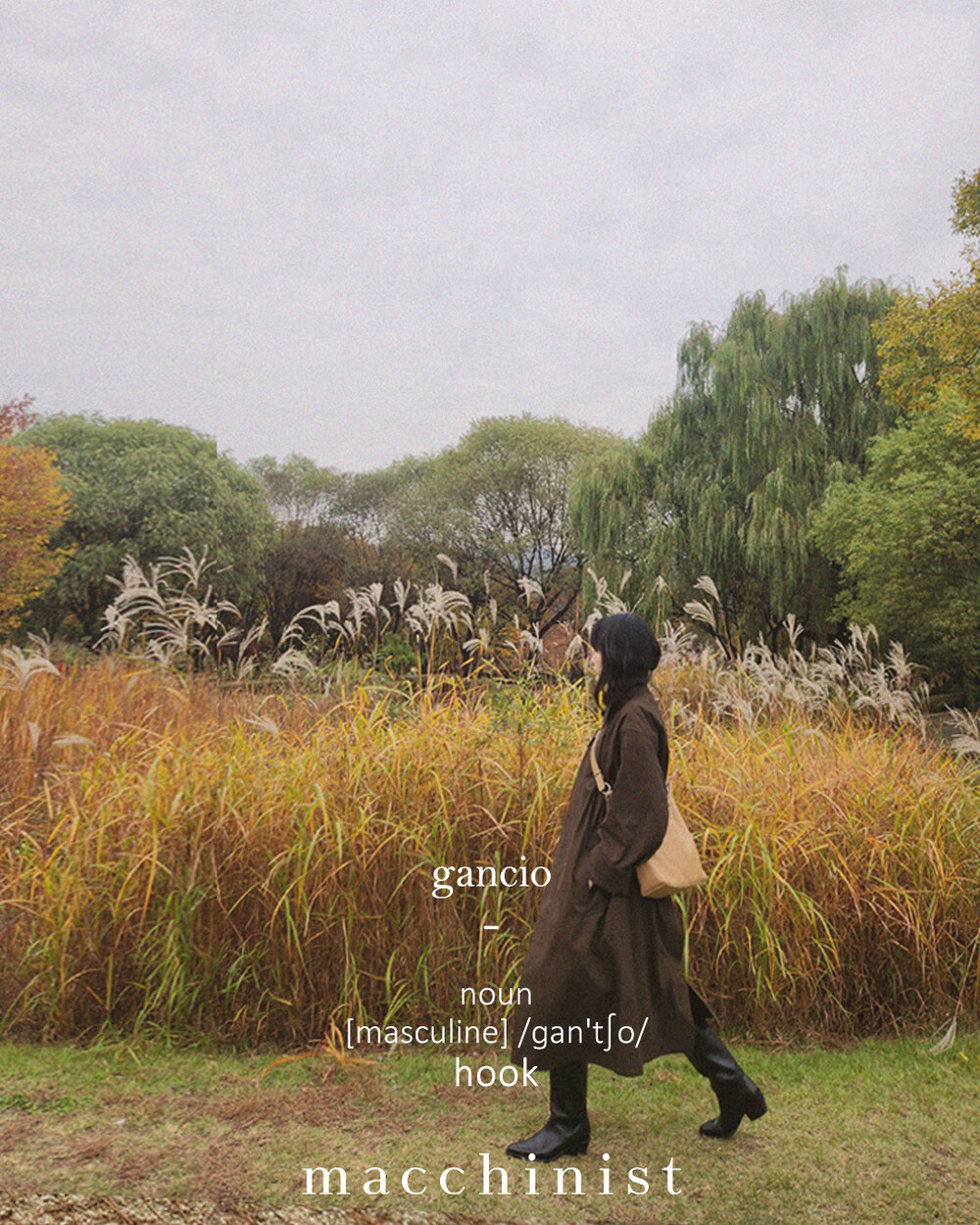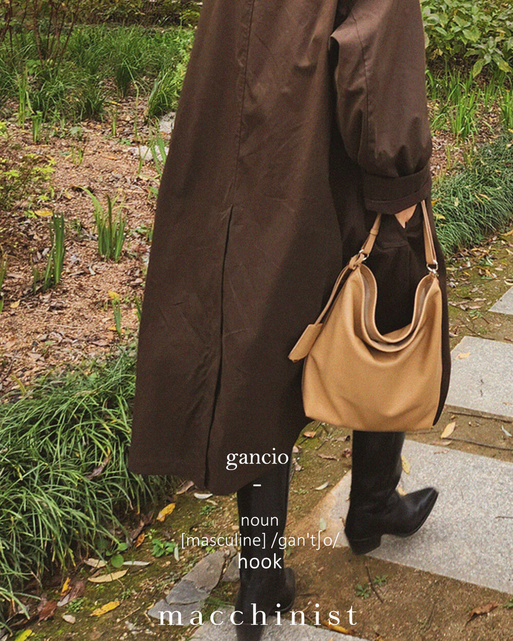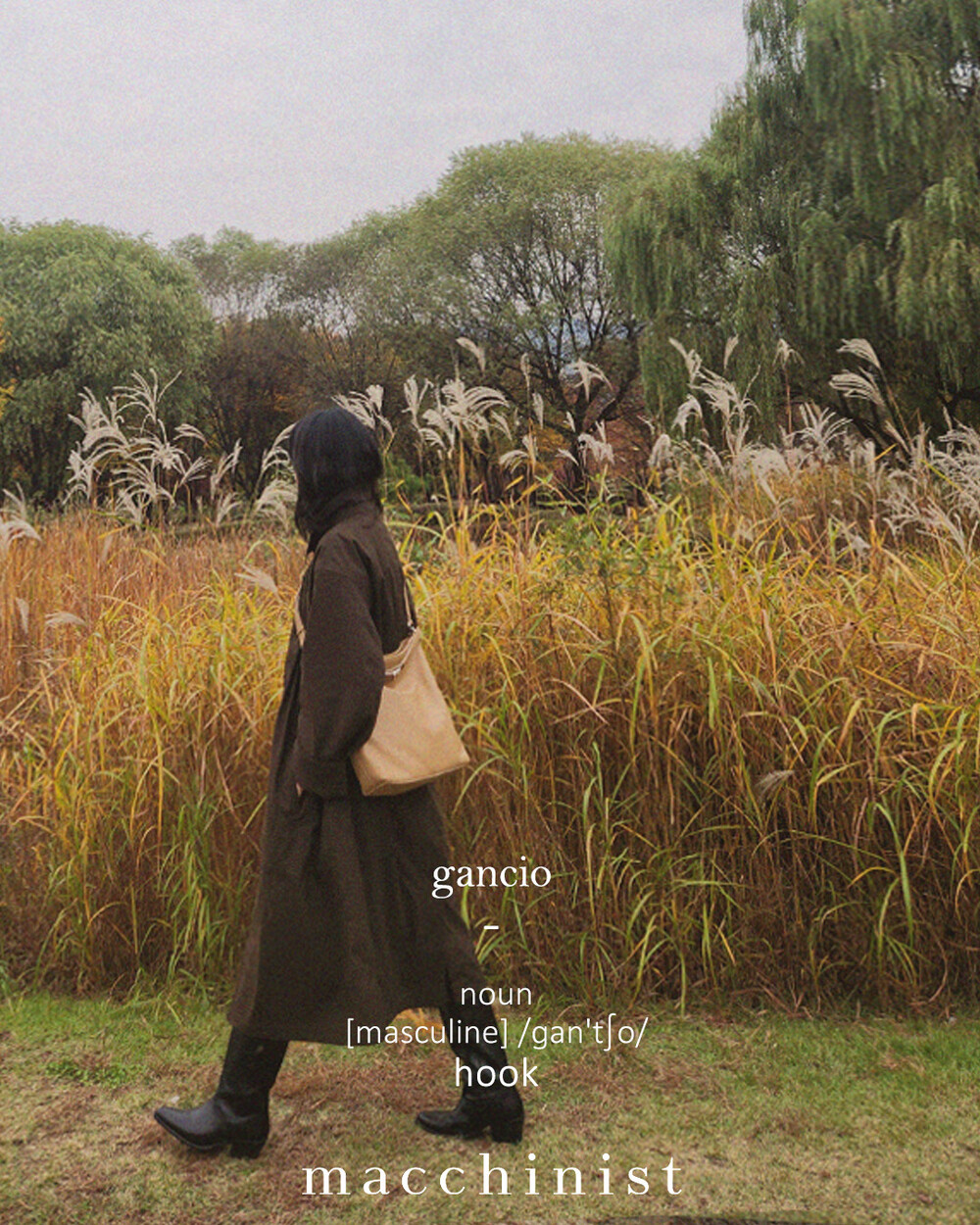 간초gancio는 이탈리아어로 고리, 후크라는 뜻으로, 버클 핸들과 크로스끈 양끝에 개폐가능한 O링 고리가 있어 기호에 따라 탈부착하여 자유롭게 스타일링 할 수 있습니다.