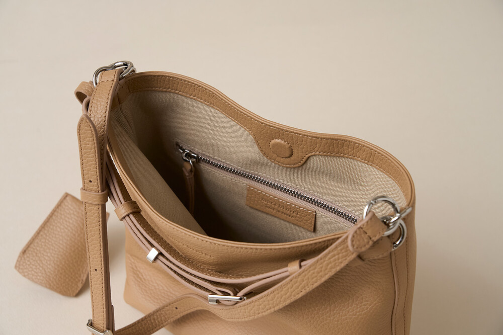 간초백은 부드러운 이탈리아 소가죽과 유연한 보강재, 코튼 캔버스 안감으로 마무리하여 전체적으로 소프트하고 유려한 곡선이 돋보이는 가방입니다.