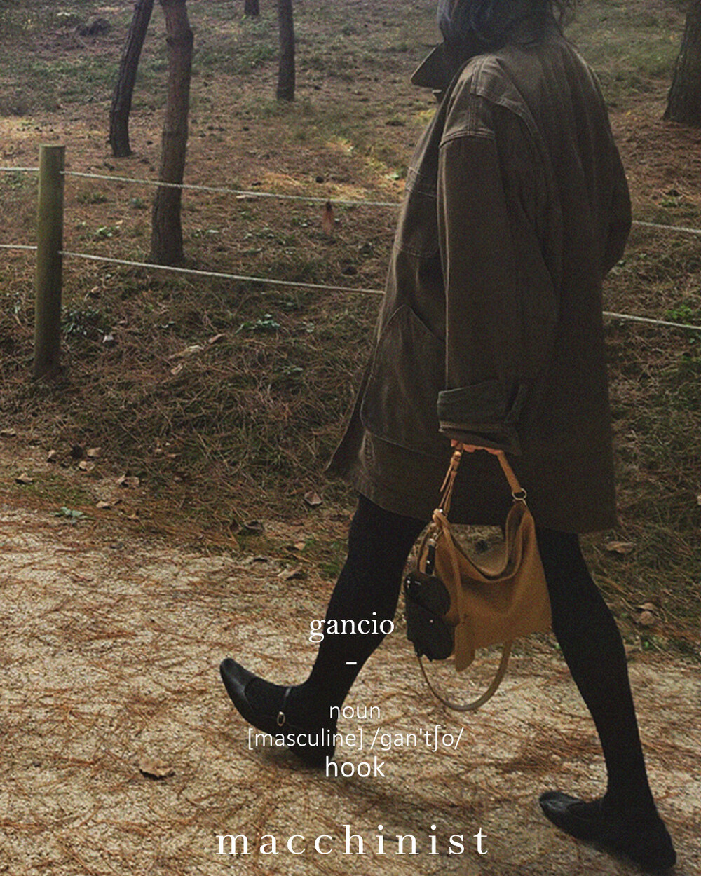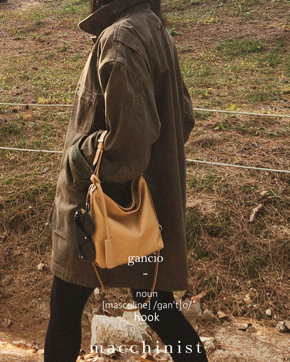 간초gancio는 이탈리아어로 고리, 후크라는 뜻으로, 버클 핸들과 스트랩 양끝에 개폐가능한 O링 고리가 있어 기호에 따라 탈부착하여 자유롭게 스타일링 할 수 있습니다.