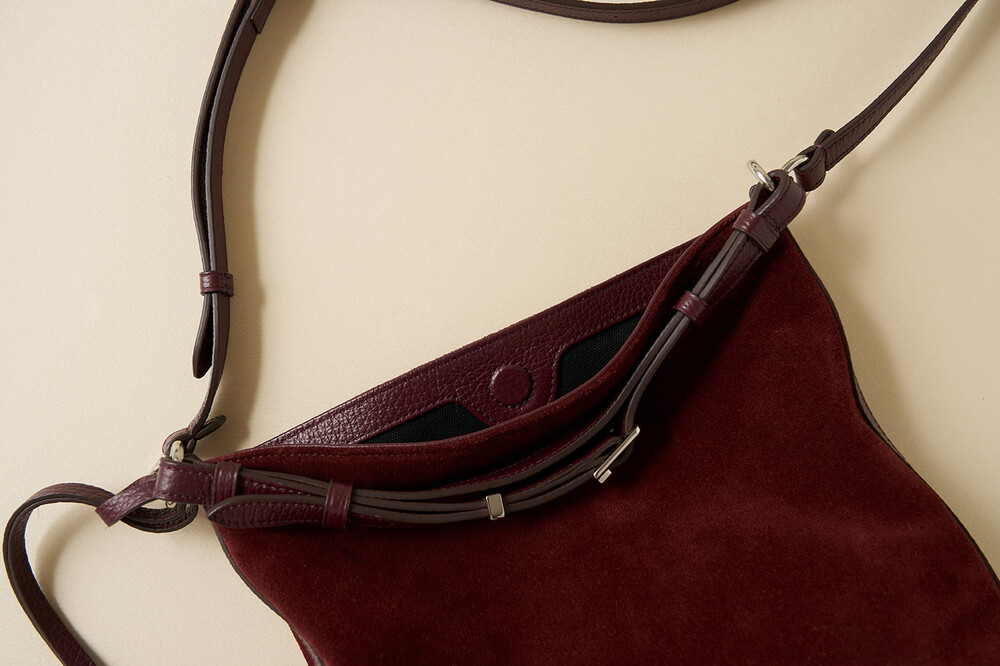 간초 콤비는 부드러운 이탈리아 소가죽과 이탈리안 스웨이드, 유연한 보강재, 코튼 캔버스 안감으로 마무리하여 전체적으로 소프트하고 유려한 곡선이 돋보이는 가방입니다.