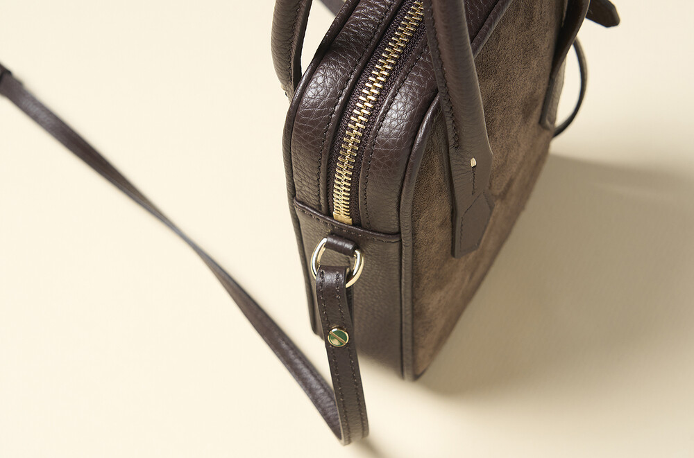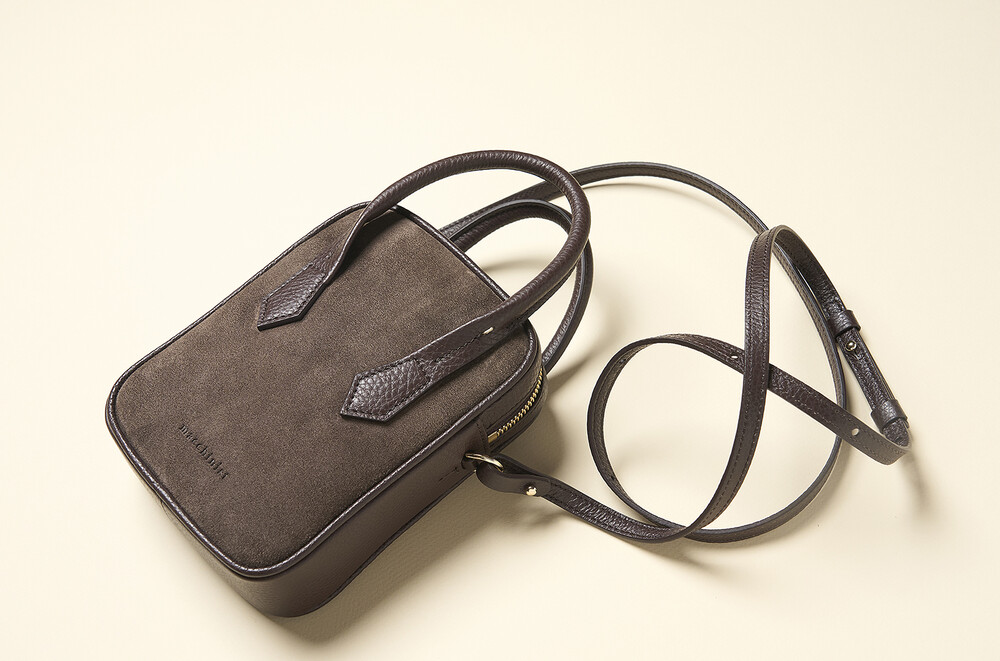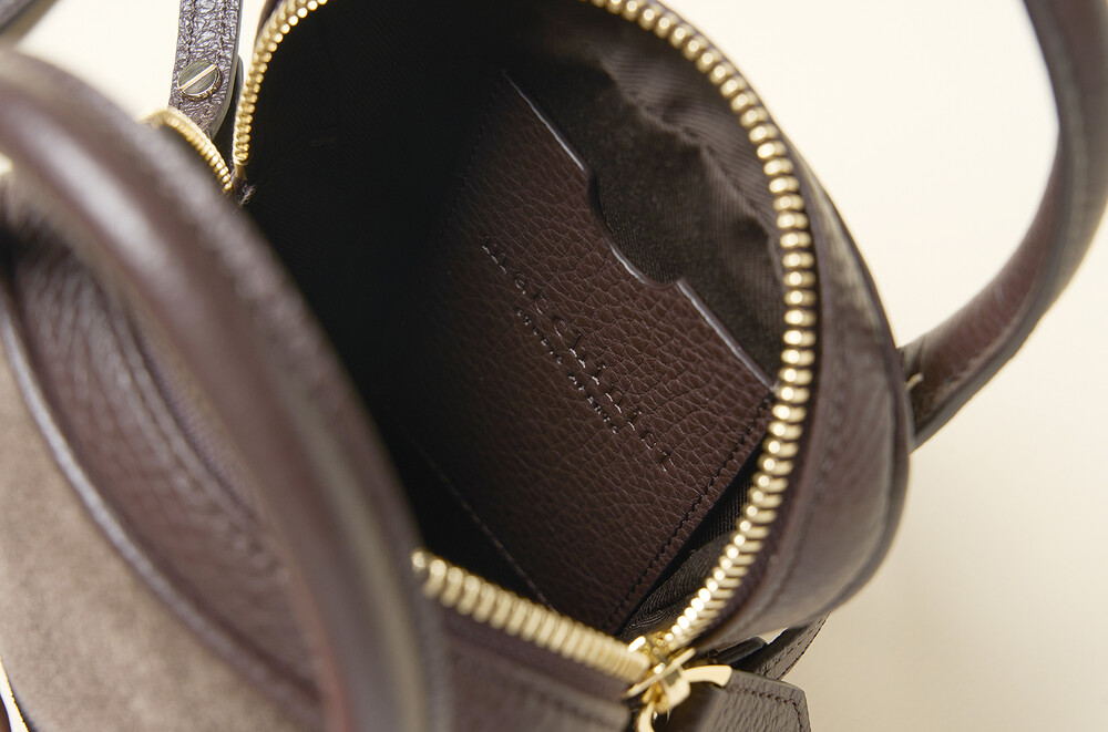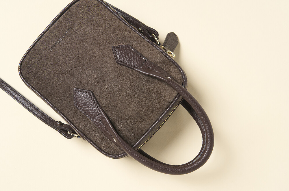 몸체는 부드러운 이탈리아 스웨이드에 탄탄한 보강재를 더해 탄성과 부드러움이 느껴지고, 소가죽으로 완성된 핸들은 핸들은 힘이 있어 아래로 쳐지지 않고 손으로 들거나 손목에 가볍게 걸칠 수 있습니다.