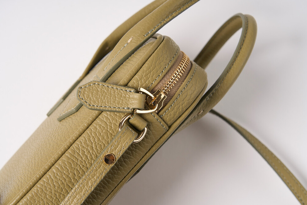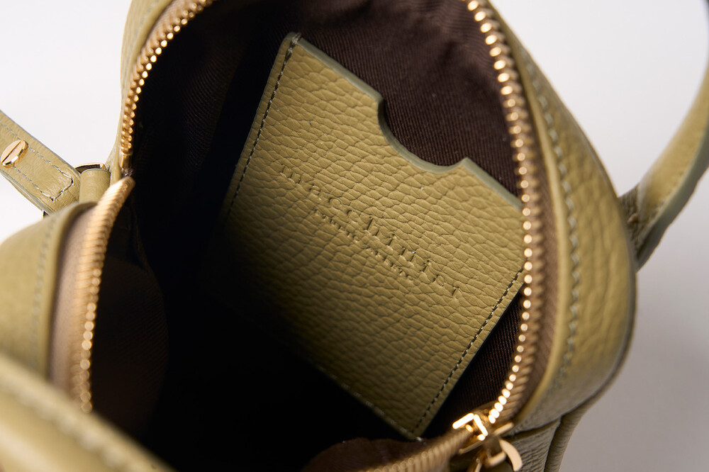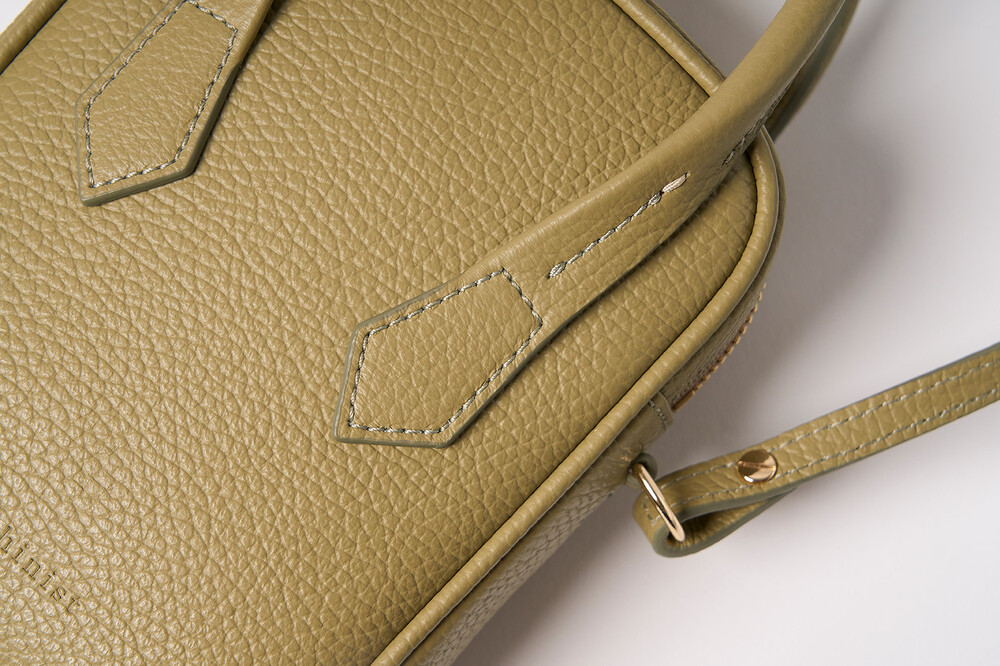 몸체는 부드러운 이탈리아 소가죽과 탄탄한 보강재의 조화로 탄성과 부드러움이 느껴지며, 핸들은 힘이 있어 아래로 쳐지지 않고 손으로 들거나 손목에 가볍게 걸칠 수 있습니다.